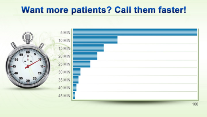 - Practices that call leads in 12 minutes or less convert about 65% of leads into consultations, leads called in 1 hour convert at 31% whereas leads that are called in 9 hours only convert about 8%.